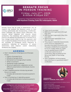 Program Description: Sensate Focus has its roots in behaviorism, but as research has evolved, the literature points to how working systemically and incorporating mindfulness-based strategies can reduce sexual difficulties, and improve sexual response and improve sexual satisfaction. This workshop will address the development of sensate focus, how change occurs, when to use this approach, and how to apply the phases of this therapy intervention for the purposes of increasing sexual frequency & satisfaction, reducing of symptoms of sexual dysfunction, and improve overall relationship satisfaction for couples. The training incorporates didactic information, demonstration, and experiential, applied practice.